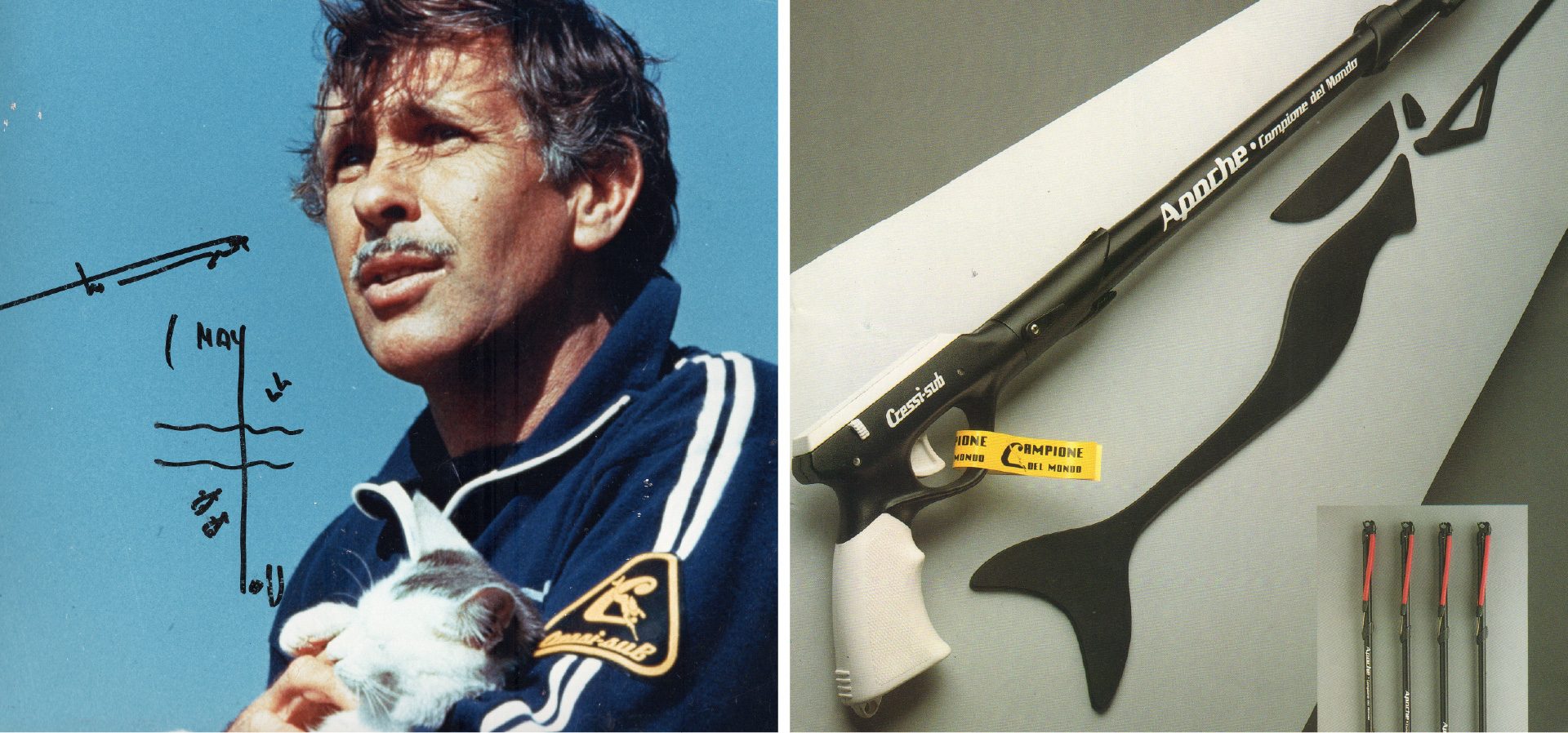 Apache Arbalète - Cressi produced a complete range of Arbalete spearguns to join the pneumatic guns, called the Apache, which very soon became the Champion speargun in the world.