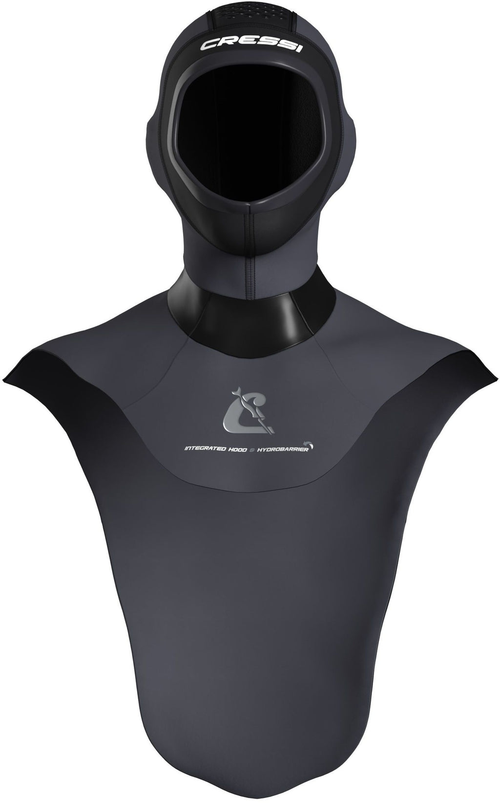 A clever Hydrobarrier panel extends from the integrated hood. It sits under the suit like an internal bib, adding an extra thermal layer around your neck, chest and back, while preventing water from entering through the vertical rear YKK zip. A soft seal around the edge of the hood sits snugly against the face to reduce flushing.