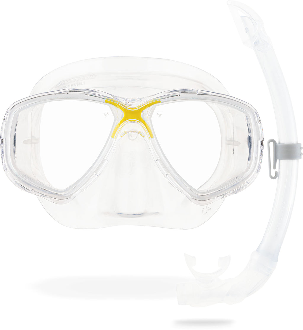 Made in Italy with premium materials, the Marea + Mexico Pro snorkelling set is a go-to combination for water explorers of all levels, from holiday snorkellers to dive centres.
